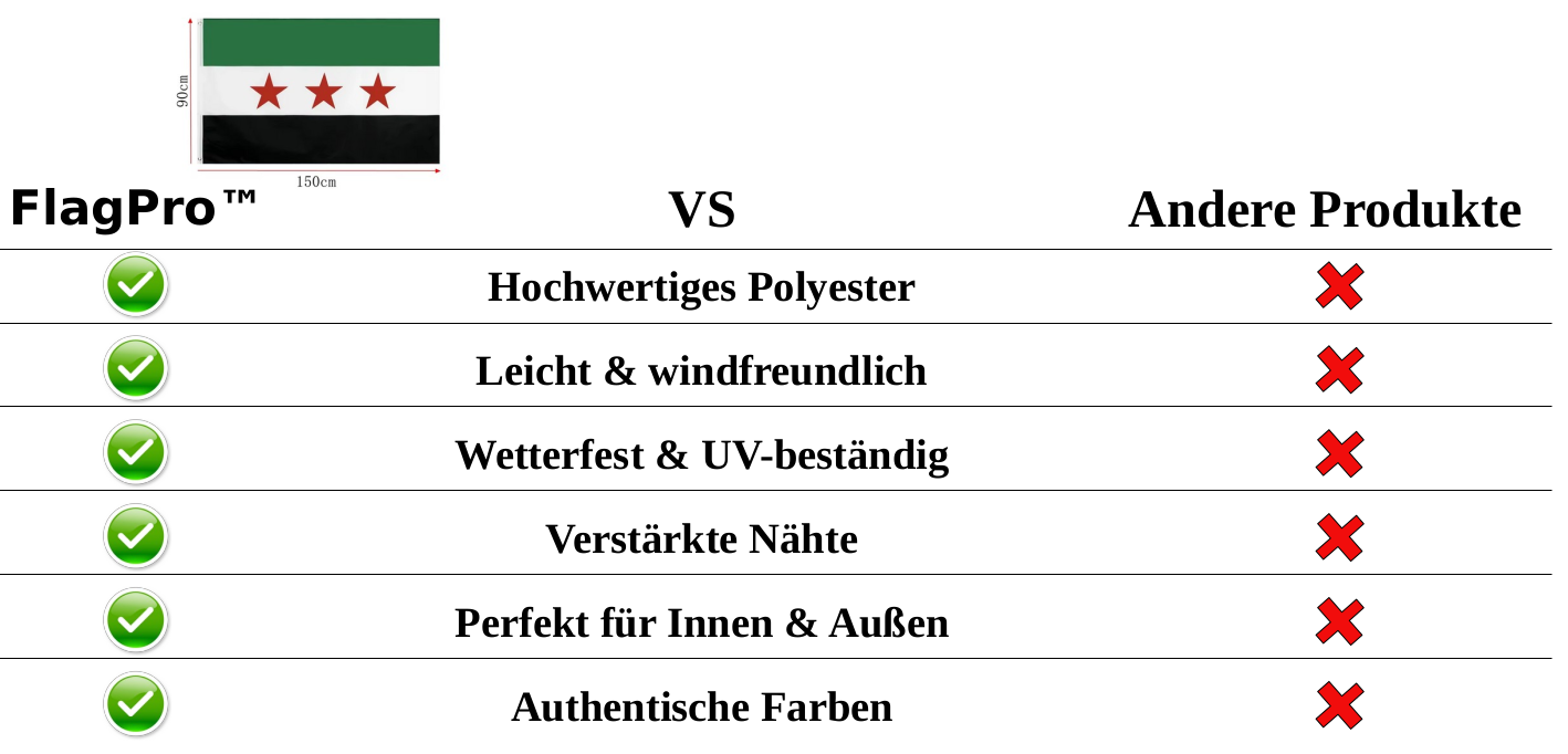 FlagPro™ Syrien Republik Flagge – 90 x 150 cm Hochwertige Polyesterfahne für Innen & Außen